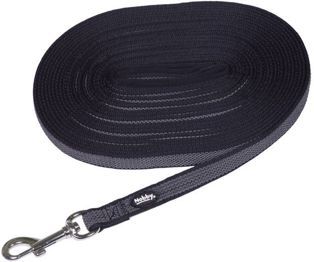 Tréninkové stopovací vodítko Nobby s pogumovanou vnější stranou zakončené klasickou kovovou karabinou. Vyrobené z pevného nylonu. Vhodné pro nácvik pachových prací, nácvik přivolání či běžnou procházku se psem. Výhodou vodítka je neoprenová polstrovaná ruční smyčka, která Vám zajistí pohodlný...
