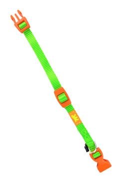 Nylonový obojek světle zelené barvy s oranžovými doplňky. prečítať celé