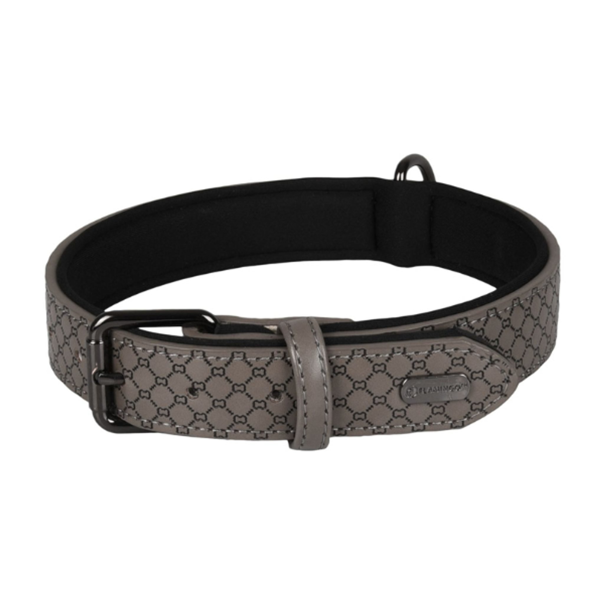 Kožený obojek Flamingo Patti šedá-XL: 47-57cm