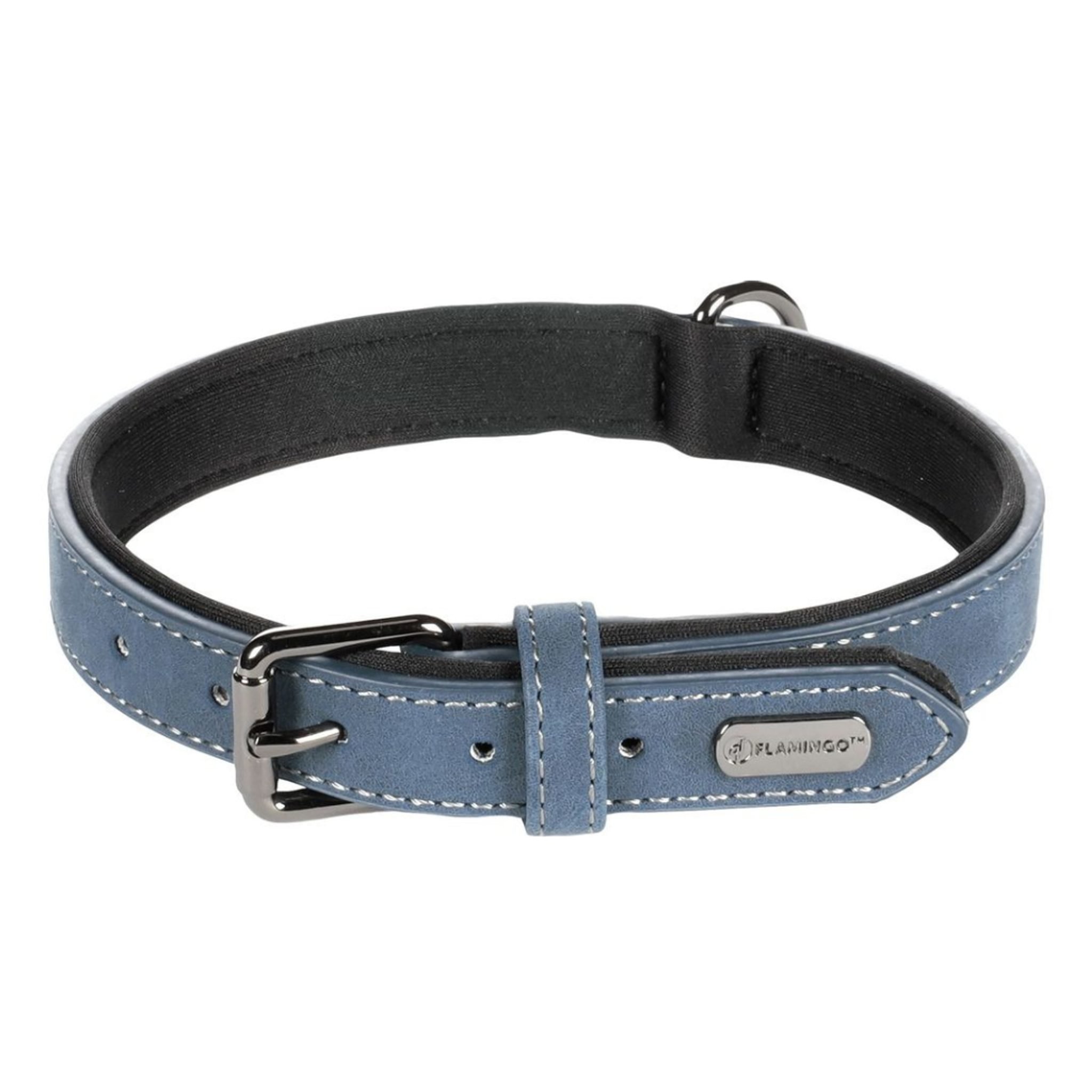 Kožený obojek Flamingo Delu modrá-L: 42 - 52cm