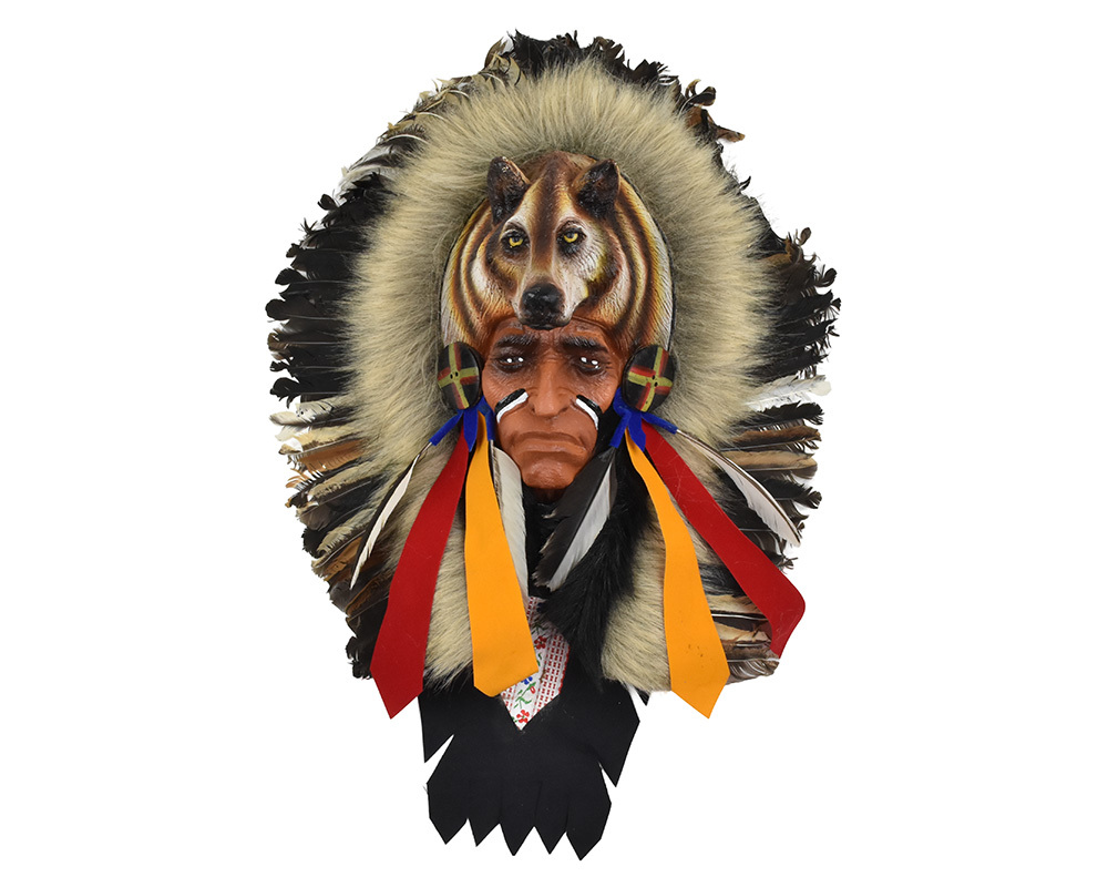 Závěsná dekorace Indiánský náčelník s vlkem 45 cm - var. D