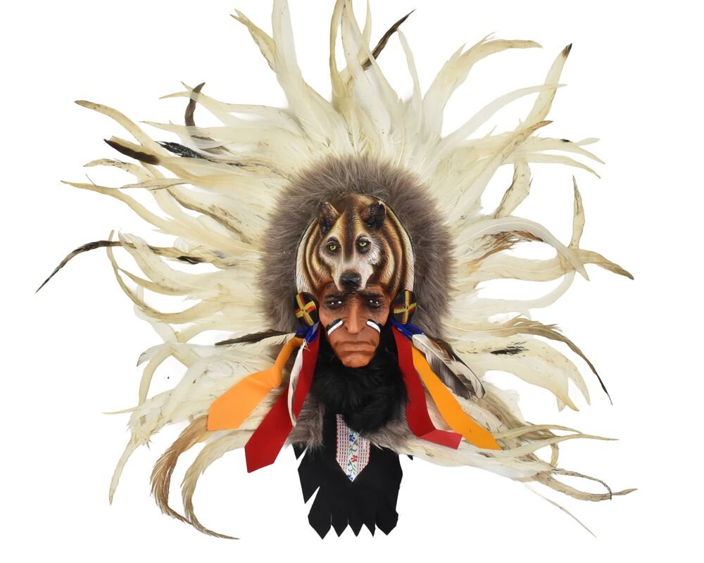 Závěsná dekorace Indiánský náčelník 55 cm - bílé peří - var. B