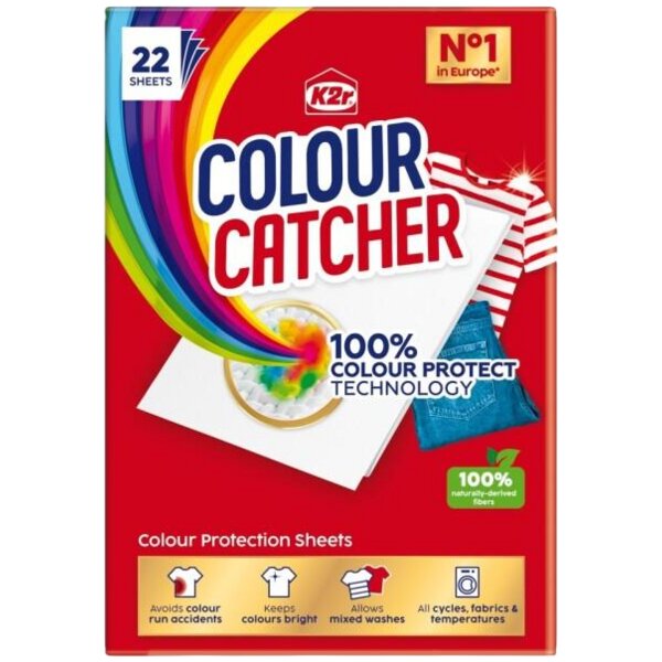 K2r Color Catcher ubrousek pro praní prádla 22 ksK2r Color Catcher ubrousek pro praní prádla 22 ks je praktický pomocník, který zachytává uvolněné barvivo z vody a tím zabraňuje obarvení ostatního prádla. Ideální pro každodenní praní, když nechcete třídit každé tričko nebo máte oblíbený kousek,...