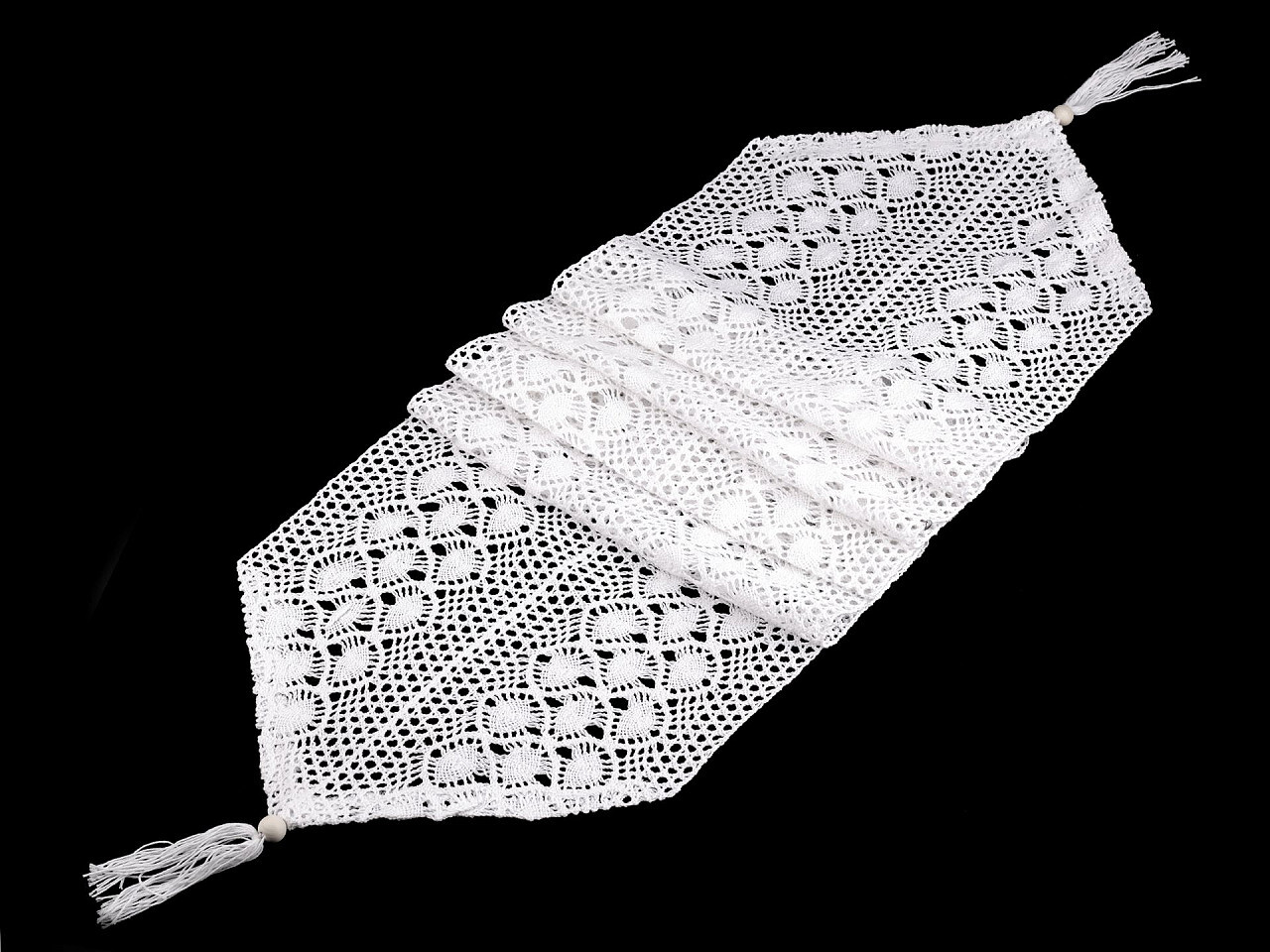 Paličkovaný běhoun / ubrus 34x175 cm - 1 ks - 1 bílá