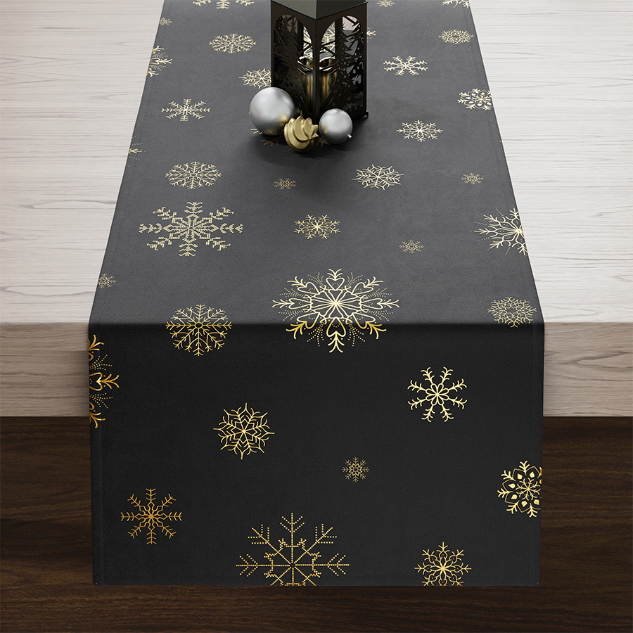 Ubrus - běhoun na stůl SNOWFLAKE černá/zlatá 40x160 cm Mybesthome