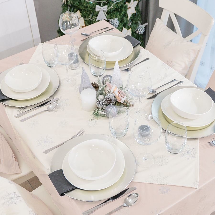 Vánoční ubrus na stůl SNOWFLAKE krémová/stříbrná 85x85 cm Mybesthome
