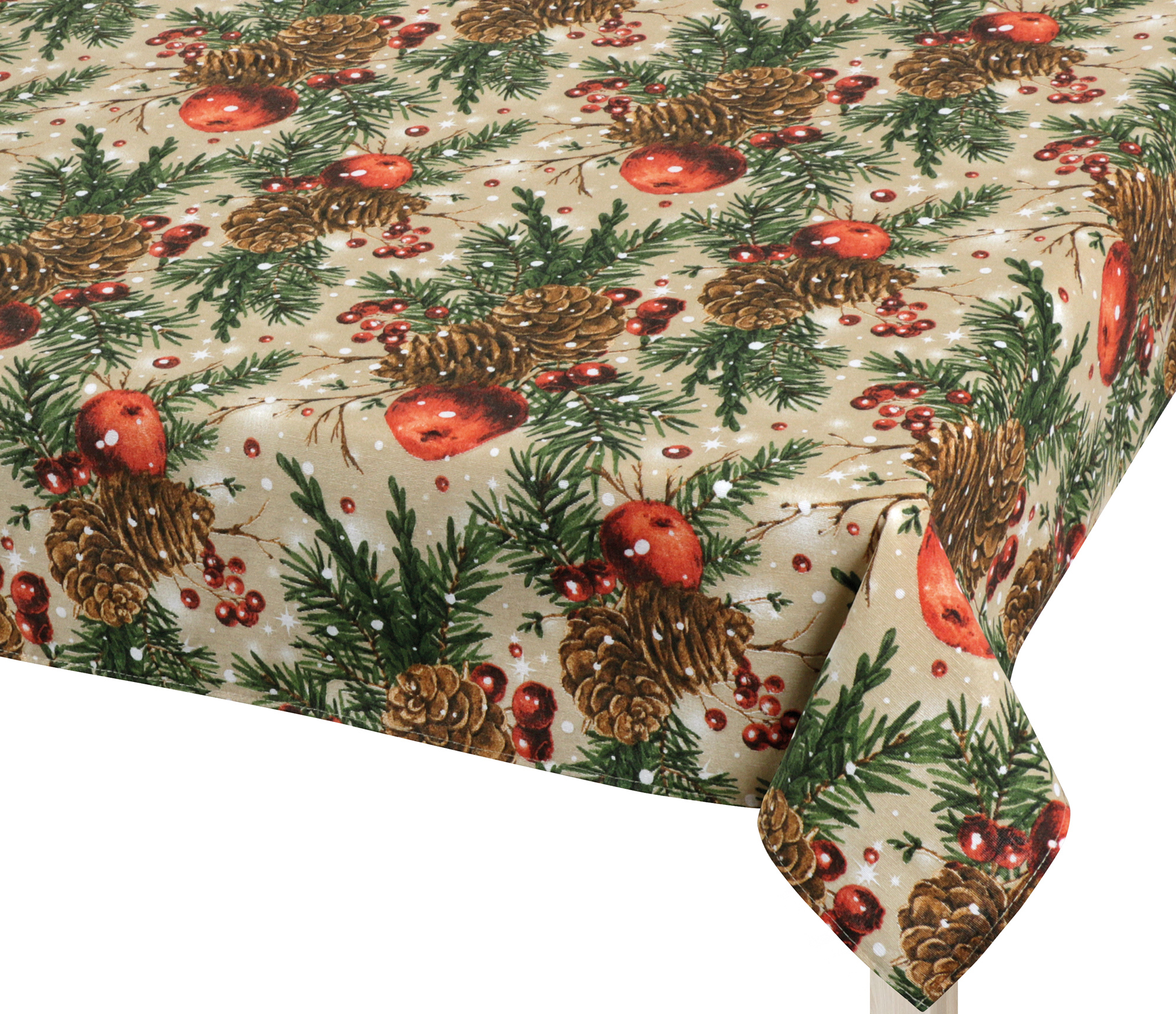 Ubrus VÁNOCE - Šišky a jablka - 70x70 cm