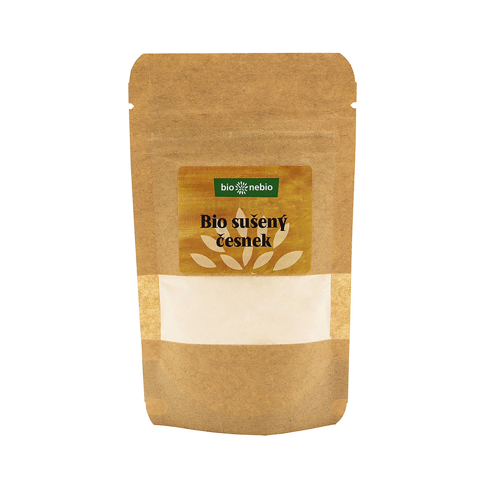 Česnek sušený mletý. produkt kontrolovaného ekologického zemědělstvíKalorická hodnota/energie (na 100ml):0kJ/0kcal. Tuky: 0 g. z toho nasycené mastné kyseliny: 0 g. Sacharidy: 0 g. z toho cukry: 0 g. Bílkoviny: 0 g. Sůl: 0 g. Vlákniny: 0 gSkladování: Skladujte v suchu.Legislativní zařazení: