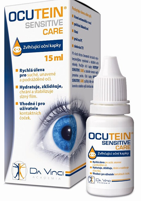 Ocutein SENSITIVE CARE oční kapky poskytují okamžitou úlevu pro podrážděné a unavené oči. Vhodné pro citlivé oči. Lze aplikovat na kontaktní čočky.  prečítať celé