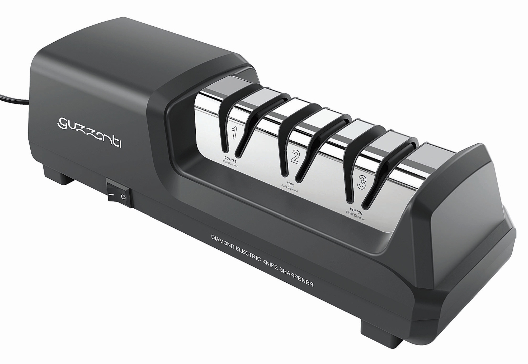 Elektrický brousek na nože Guzzanti GZ 008BElektrický diamantový brousek je určený k broušení ocelových i keramických nožůNabrousí všechy typy nožů: kuchyňské, domácí, sportovní, rybářské i kapesní nože3 stupňový brousek umožňující hrubé i jemné broušení a leštěníÚhel broušení je 15°Vhodný pro...