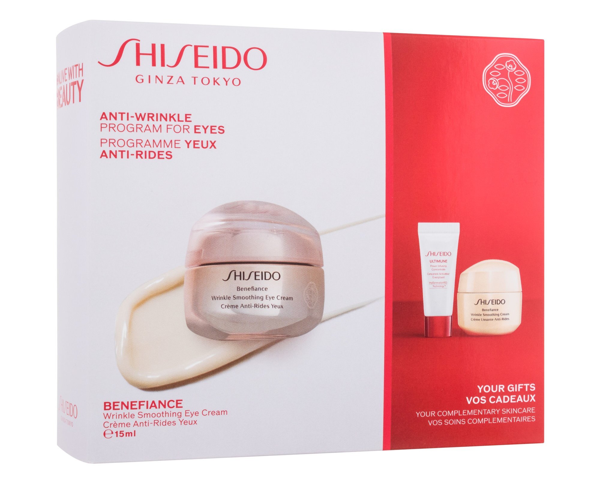 Shiseido Benefiance oční krém Benefiance Wrinkle Smoothing Eye Cream 15 ml + pleťové sérum Ultimune Power Infusing Concentrate 5 ml + denní pleťový krém Benefiance Wrinkle Smoothing Cream 15 ml