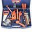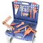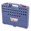 Kufřík plný nářadí, který rozložíte jako přehledný pracovní stoleček, stačí přidat nohy a je hotovo. Ve stěně kufříku jsou umístěny otvory, na kterých jsou háčky na zavěšení nářadí. Na stole jsou také otvory se šrouby, pro umístění svěráku. Tenhle kufřík si mohou sebou malí kutilové brát úplně všude.