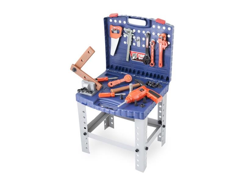 Dětská sada nářadí G21 s pracovním stolem Kufřík plný nářadí, který rozložíte jako přehledný pracovní stoleček, stačí přidat nohy a je hotovo. Ve stěně kufříku jsou umístěny otvory, na kterých jsou háčky na zavěšení nářadí. Na stole jsou také otvory se šrouby, pro umístění...