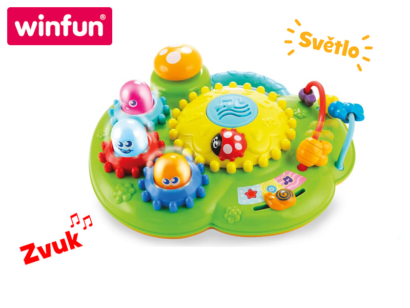 Krásná barevná zahrádka se zvířátky s různými pohyblivými a otočnými částmi. Zahrádka je a baterie, je vybavena různými zvukovými efekty a zároveň i svítí. Zahrádka stimuluje smysly -zrak, hmat a sluch. Vhodné pro děti od 6 měsíců. prečítať celé