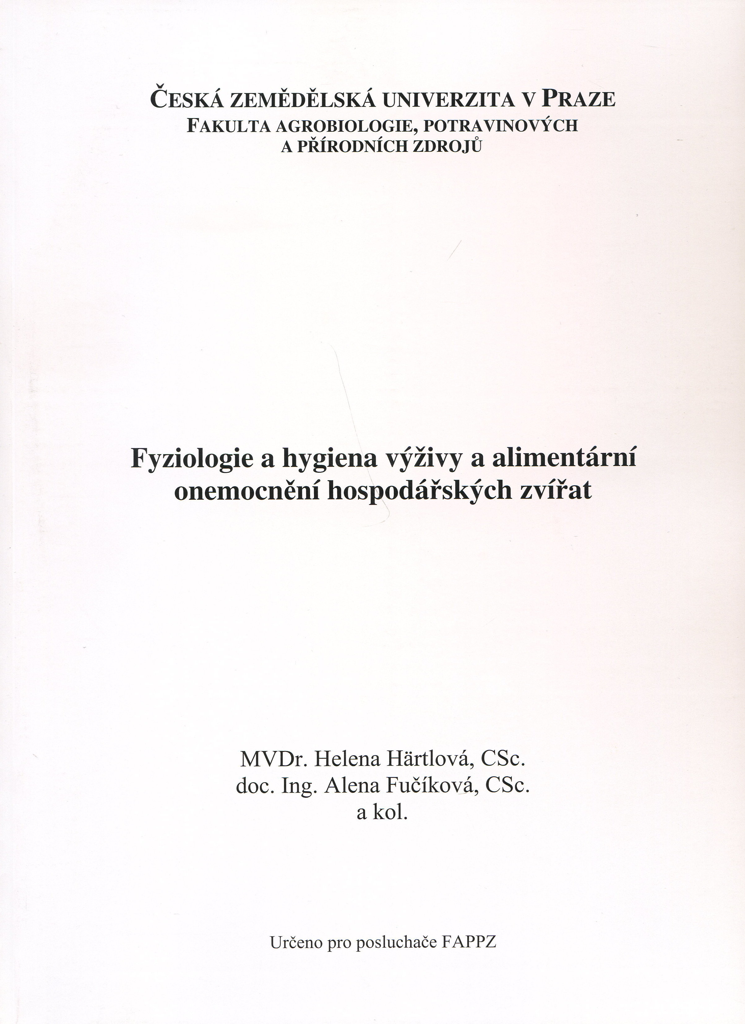 Fyziologie a hygiena výživy a alimentární onemocnění hospodářských zvířat (česky)