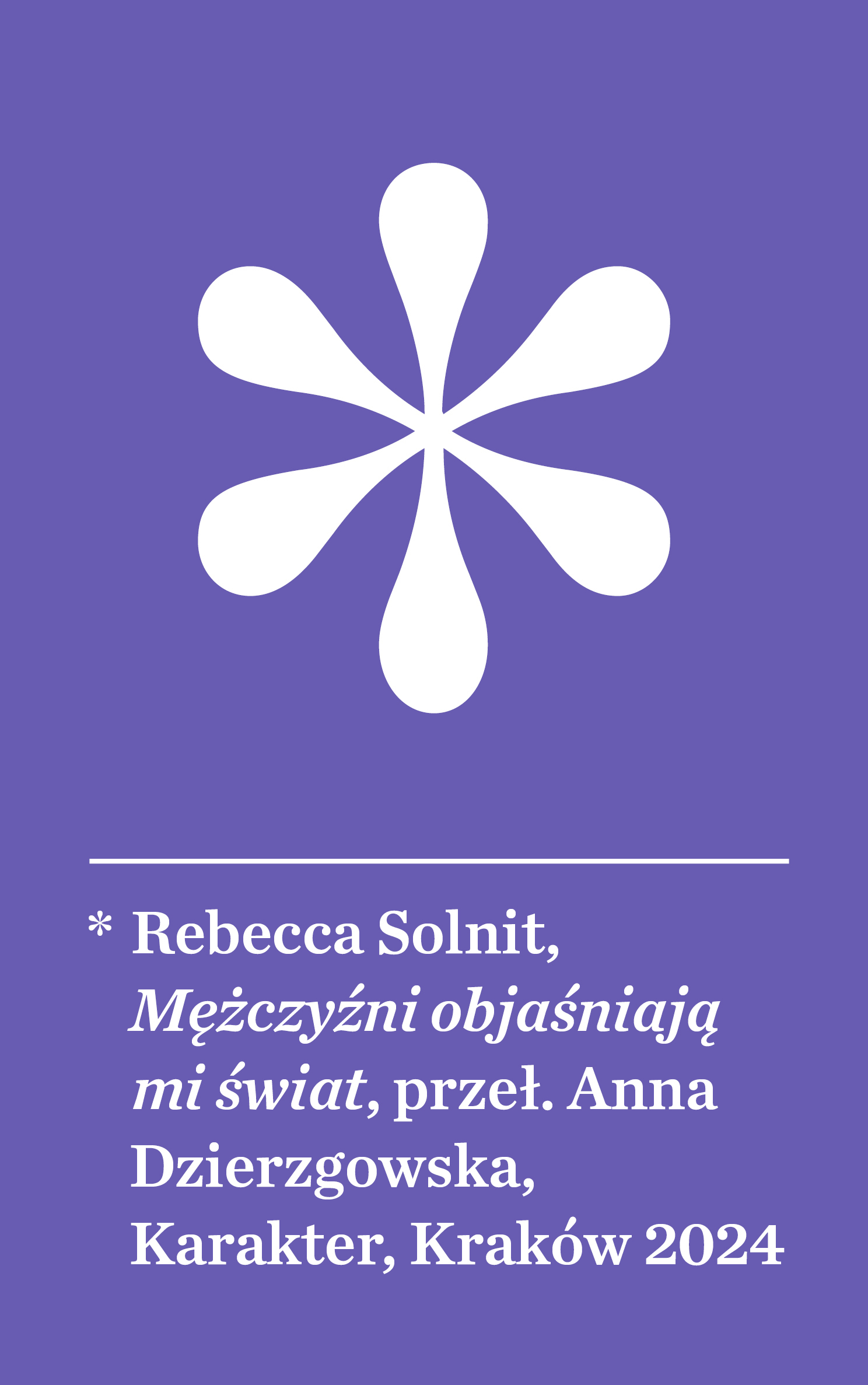 Mężczyźni objaśniają mi świat III wydanie Zaczyna się niewinnie, od czegoś, co przy pewnej dozie dobrej woli można by uznać za towarzyską niezręczność. Podczas przyjęcia pan domu nie przyjmuje do wiadomości, że rozmawia z autorką książki, którą właśnie jest jej łaskaw objaśniać. Rebecca Solnit...