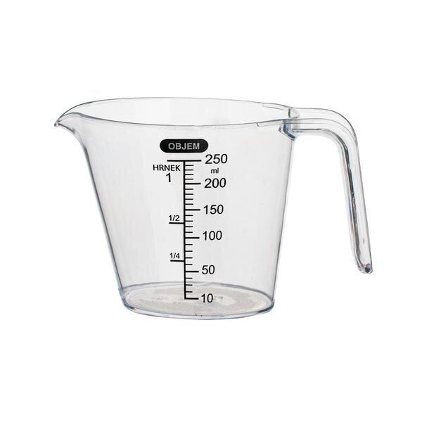 Presné meranie pre vašu kuchyňu aj dielňu! Táto odmerka s objemom 250 ml je ideálnym pomocníkom na presné dávkovanie tekutín alebo sypkých látok. Vďaka svojim kompaktným rozmerom dobre padne do ruky a uľahčí vám každodennú prácu.