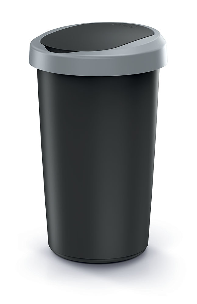Odpadkový koš COMPACTA R FLAP - objem: 25 l, barva: recykl. černá se světle šedým víkem