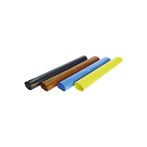 Sada barevných LDPE pytlů (černý, hnědý, modrý, žlutý) v roli pro barevné třídění odpadů;