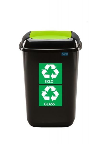 Odpadkový koš na tříděný odpad 28 l s víkem - zelený, sklo