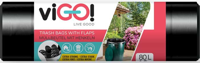 viGO! Pytle odpadkové s uchy LD 80l/10 ks 80x90+20cm - černé