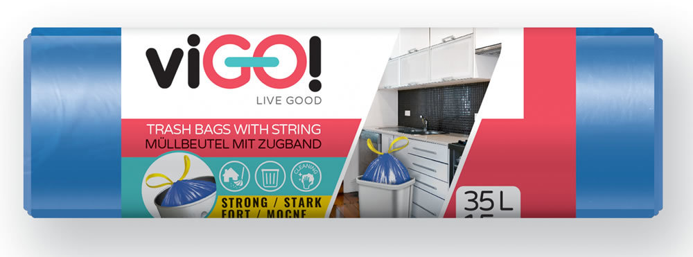 Vigo vrecia na odpad 35l HDPE - modré zaťahovacie 15 ks