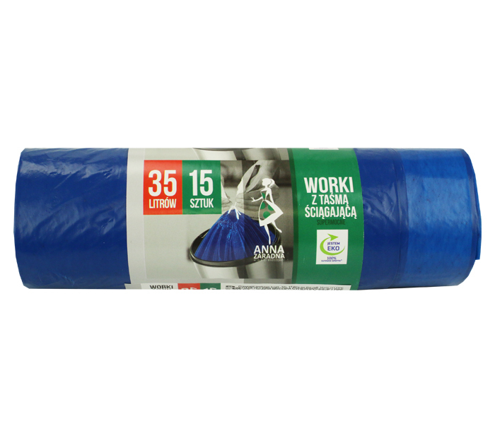 Pytel do koše 35l, 15ks Supersilné, černý se zatahovacím páskem