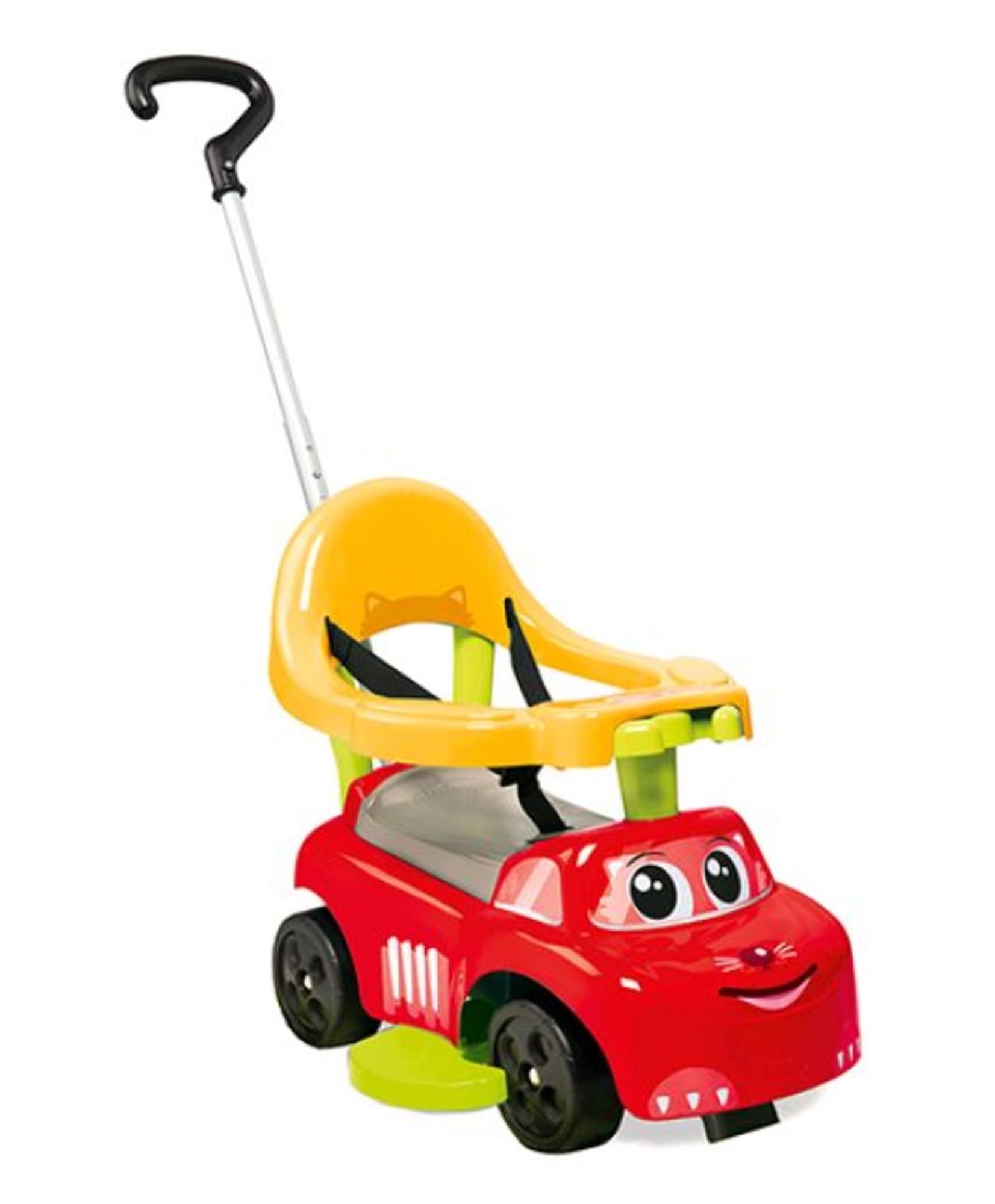 Stabilní odrážedlo pro nejmenší z kvalitního plastu ve tvaru auta. Odnímatelné kovové rodičovské madlo, opěry nohou, bezpečností pás, elektronický volant a ochranný rám pro nejmenší děti. Pod sedadlem schránka na drobnosti. Rozměry: 54 x 47 x 40,5 cm. Hmotnost odrážedla 2,5 kg. Max. nosnost: 50kg.