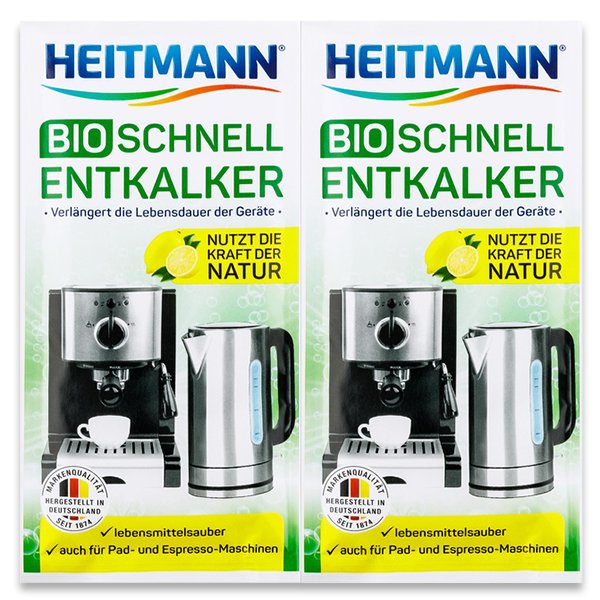Heitmann BIO - Rychlo-odvápňovač vodního kamene z elektrických spotřebičů - 2x25gPotřebujete odvápnit kávovar? Pokud ano, tak je právě tento produkt vhodnou volbou, jelikož je na bázi přírodních kyselin, které účinně odvápní Váš kávovar, rychlovarnou konvici nebo jiný přístroj, který je potřeba...