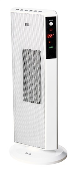 PTC topný článek 1400/2000W, ECO mód - spustí se při teplotě pod 18°C a topí do 22°, oscilace, časovač až 24h, možnost oscilace, teplotní rozmezí 15°-35°C, LCD displej, dálkové ovládání, mnohojazyčný záruční list prečítať celé