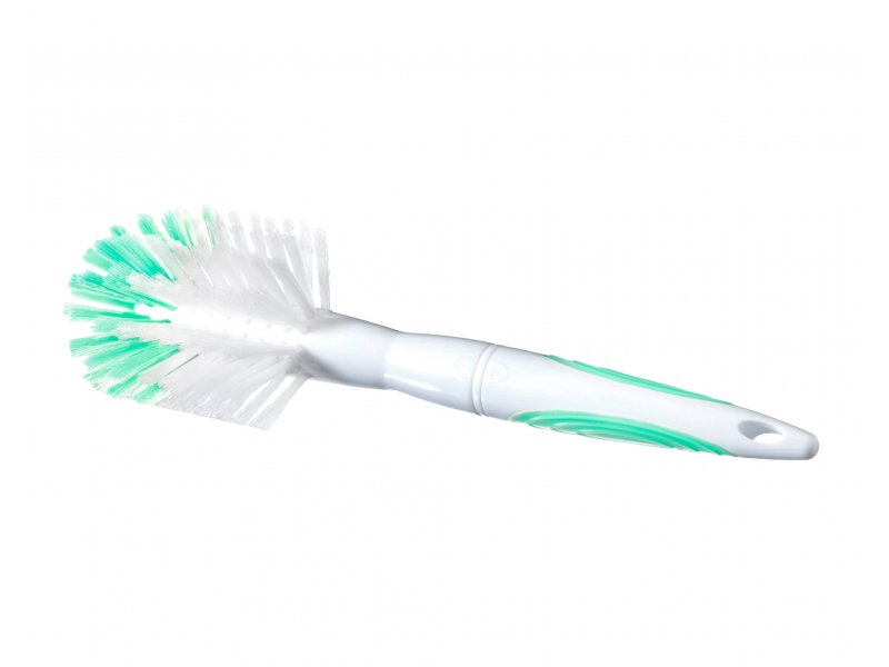 Extra široký konec kartáče s měkkými a zároveň odolnými štětinami umožňuje dosažení i obtížně čistitelných částí lahvičky. Po rozšroubování rukojeti získáte speciální kartáček na čištění savičky. Protiskluzová rukojeť usnadňuje držení kartáče při mytí.