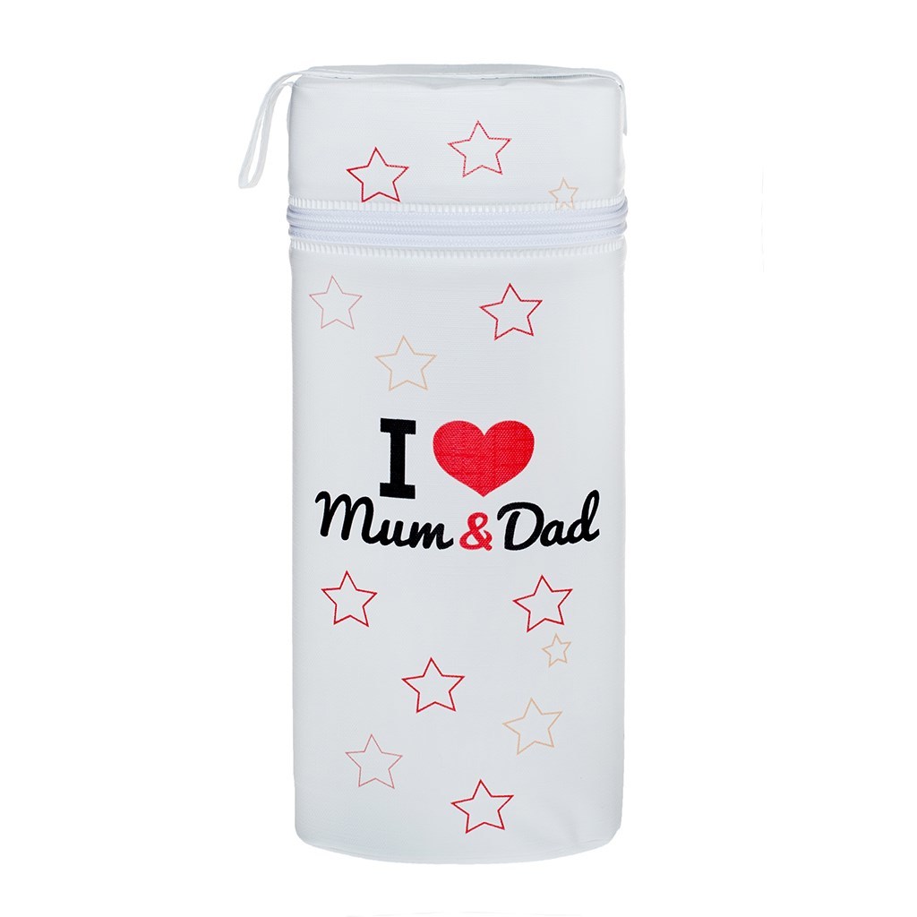 Praktický termoobal Jumbo New Baby z lehkých a kvalitních materiálů s obrázkem barevných hvězdiček a nápisem I love Mum and Dad. Díky speciální izolační vrstvě má termoregulační vlastnosti a uchovává pokrmy teplé či studené dle potřeby. Materiál: polystyren. Typ Jumbo je určen pro velké, široké láhve.Rozměry: - výška cca 25,5 cm- šířka cca 10 cm- vnitřní průměr cca 7,5 cmProdukt české značky