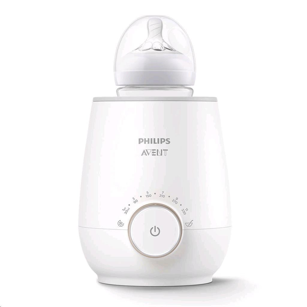 Elektrický ohřívač láhví Philips Avent. Ohřívá mléko či pokrm rovnoměrně. Ohřívač šetrně rozmrazuje mateřské mléko nebo dětskou stravu. Je vhodný pro láhve Avent Classic a Natural a nádobky na potraviny. Rozměry cca 17x12 cm, průměr otvoru pro láhev cca 9,5 cm. Ohřívá 150 ml/5oz mléka do pokojové teploty během 3 min.
