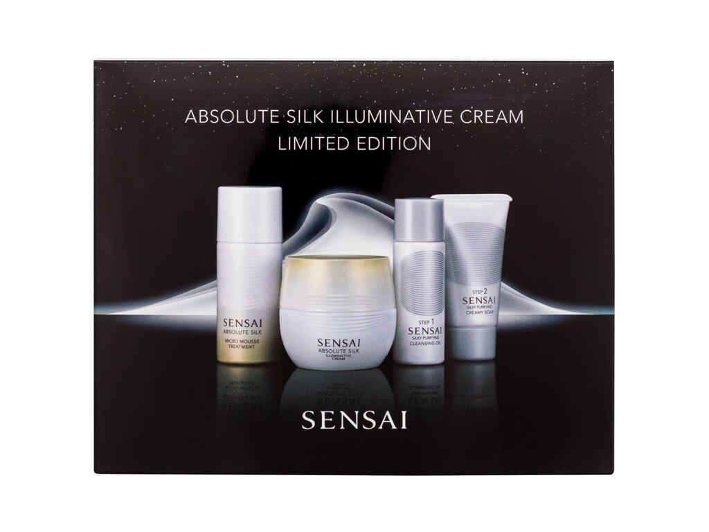 Sensai Absolute Silk denní pleťový krém Absolute Silk Illuminative Cream 40 ml + čisticí olej Silky Purifying Cleansing Oil 30 ml + čisticí mýdlo Silky Purifying Creamy Soap 30 ml + pleťová pěna Absolute Silk Micro Mousse Treatment 30 ml