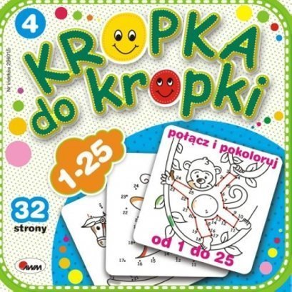 32 strony rysunków do uzupełnienia poprzez łączenie linią kolejnych punktów zróżnicowanie stopnia trudności w kolejnych numerach liczenie do 10, 15, 20, 25 itd. prečítať celé