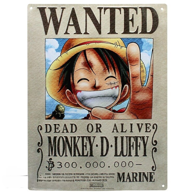 Plechová cedule One Piece - Luffy Wanted, 28 x 38 cm