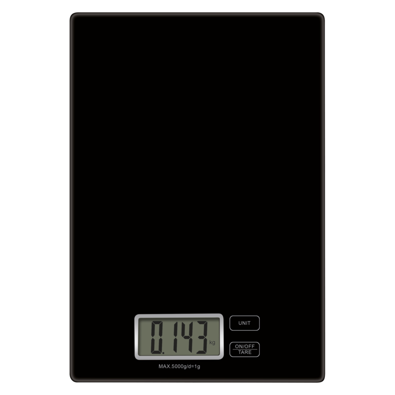 automatické vypnutí: po 2 minutách|barva: černá|Bluetooth: ne|BMI index – měření tuku, vody a svalové hmoty: ne|funkce dovažování: ano|indikace slabých baterií: ano|indikátor přetížení: ano|jednotky váhy: g, oz, lb, kg|LCD displej: ano|max. zátěž: 5 kg|napájení: 1× 3 V CR2032 (součástí balení)|paměť: ne|podsvícený displej: ne|povrch váhy: tvrzené sklo|přesnost vážení: 1 g|prodejní obal: 1 ks, krabička|produkt: kuchyňská váha|rozměr: 15 × 152 × 219 mm