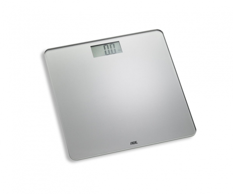Osobní váha ADE BE 1513 Leevke má nosnost do 180 kg s rozlišením 100 g. Povrch skleněný, váha má osvětlený LCD displej