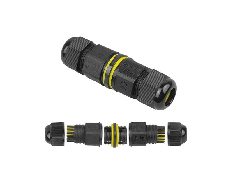Elektroinstalační spojka určená pro snadné připojení elektrických kabelů, zajišťující pevné spojení. Je chráněna proti prachu, písku a jiným pevným předmětům a má vysoký stupeň ochrany proti účinkům vniknutí vody.