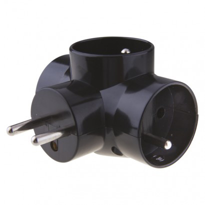 Rozbočovací zásuvka 3× kulatá, černá.