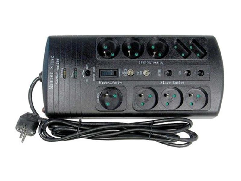 Přepěť.ochrana+TV+telef-9zásuvek master-slave 3m Zapnutí spotřebiče v první zásuvce připojí ostatní zásuvky max.2200W7× zásuvka s kolíkem2× zásuvka 2pólová napěťová ochrana 1,8kV/1nsproudový jistič 10Aochrana anténního vstupu TV+telefonních přístrojů a faxůkrytí IP20 prečítať celé