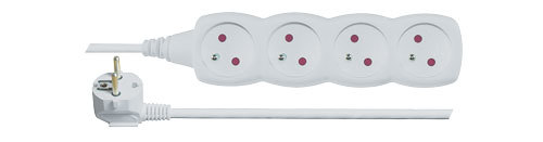 Prodlužovací přívod 4 zásuvky 5m EMOS P0415 - 4 zásuvky bez vypínače ~250V / 10A max. - délka kabelu 5m - barva bílá - prodejní obal: 1ks, závěs prečítať celé