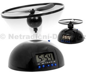 Když budík začne ve stanovený čas zvonit, vrtulka odletí a alarm zmlkne teprve poté, co vrtulku seberete a opět ji nasadíte zpět na správné místo....