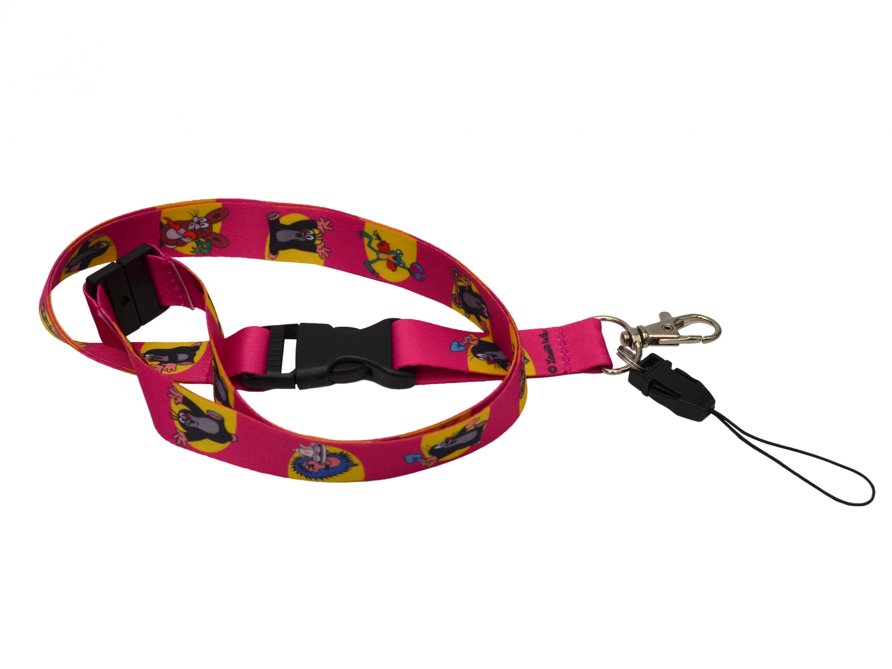 Saténová šňůrka na krk s motivem Krtečka a jeho kamarádů, opatřená bezpečnostní sponou proti uškrcení. Spodní část s kovovou karabinkou a smyčkou na mobil lze oddělit a použít samostatně. Délka 50 cm. Šířka popruhu 20 mm. prečítať celé