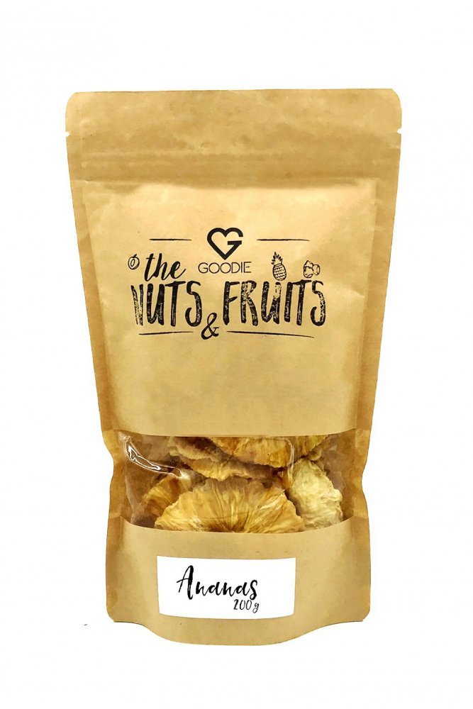 Výběrový ananas nakrájený na plátky. Dopřejte svým chuťovým buňkám pořádnou dávku exotiky! Bez přidaného cukru a bez siřičitanů SO2. Sušený ananas obsahuje kvalitní sacharidy přirozeně vyskytující se v ovoci. Slouží jako rychlý zdroj energie. Výhody: rychlý zdroj energie bez přidaného cukru...