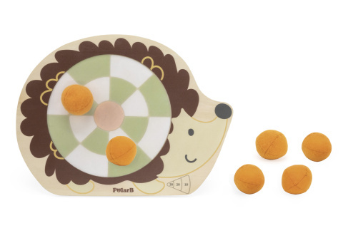 Dřevěný terč s motivem ježka. Terč lze postavit pomocí stojánku umístěného na zadná straně.. Balení obsahuje 6 látkových míčků. Rozměry terče 30x7,5x20,5 cm. Baleno v krabici. Věk 3+ prečítať celé