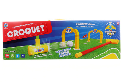 Hra kroket. Pomocí palice posouváte míček skrz branky do cíle. Palice svítí a vydává zvuky při nárazu do míčku (napájení na 3xAG13 baterie - jsou součástí balení). Materiál plast. Rozměry balení 55x18x4,5 cm. Věk 3+ prečítať celé
