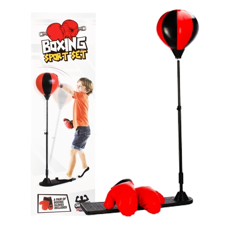 Boxerská souprava poskytne skvělou zábavu a zároveň intenzivní trénink těla a mysli. Obsah soupravy: boxovací pytel na stojanu, boxerské rukavice, pumpa.Rozměry produktu: stojan nejnižší (délka) [cm]: 68 cm, nejvyšší stojan (délka) [cm]: 103 cm, taška (průměr) [cm]: 16 cm, rozměry balení ( dxvx...