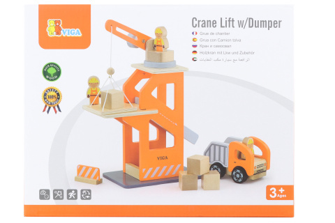 Dřevěný jeřáb s výtahem a sklápěčkou. Rozměry cca 21 x 11 x 26,5 cm. Věk 3+ prečítať celé