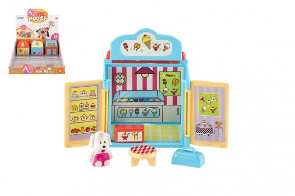 Malý domeček pro panenky určený nejen pro holčičky! Jsou tři druhy domků - prodejna zmrzliny, květinářství a také salón krásy. V každém domku nalezneš zvířátko a dva doplňky. Pořiď si domečky všechny tři a začni tak podnikat ve svém městečku!